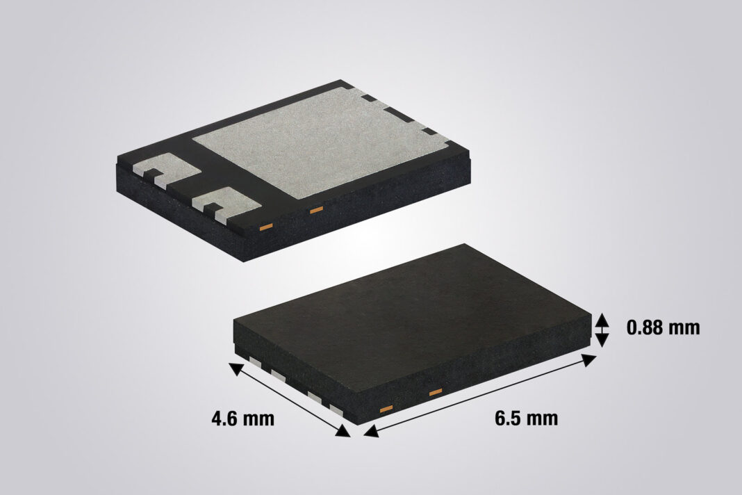 The DFN6546A measures 6.5×4.6 mm with a typical profile of 0.88 mm. Compared to Vishay’s SMPC (TO-277A) package at the same footprint, the new package cuts height by 10% and supports 50% higher current ratings. Wettable flanks allow automated optical inspection (AOI), eliminating the need for X-ray inspection.